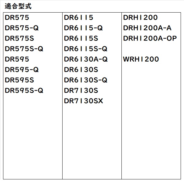 DR575 , DR575-Q , DR575S , DR575S-Q , DR595 , DR595-Q , DR595S , DR595S-Q , DR6115 , DR6115-Q , DR6115S , DR6115S-Q , DR6130A-Q , DR6130S , DR6130S-Q , DR7130S , DR7130SX , DRH1200 , DRH1200A-A , DRH1200A-OP , WRH1200 |