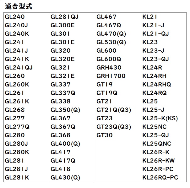 KL21 , KL21-J , KL21-QJ , KL23 , KL23-J , KL23-QJ , KL24R , KL24RH , KL24RHQ , KL24RQ , KL25 , KL25-J , KL25-K(KS) , KL25NC , KL25-QJ , KL25QNC , KL26R-K , KL26R-KW , KL26R-PC , KL26RQ-PC , KL27 , KL27-J , KL27-QJ , KL27R , KL27RH , KL27RHQ , KL27RQ , KL28H , KL28R-PC , KL28RQ-PC ,